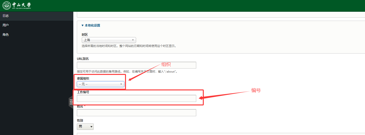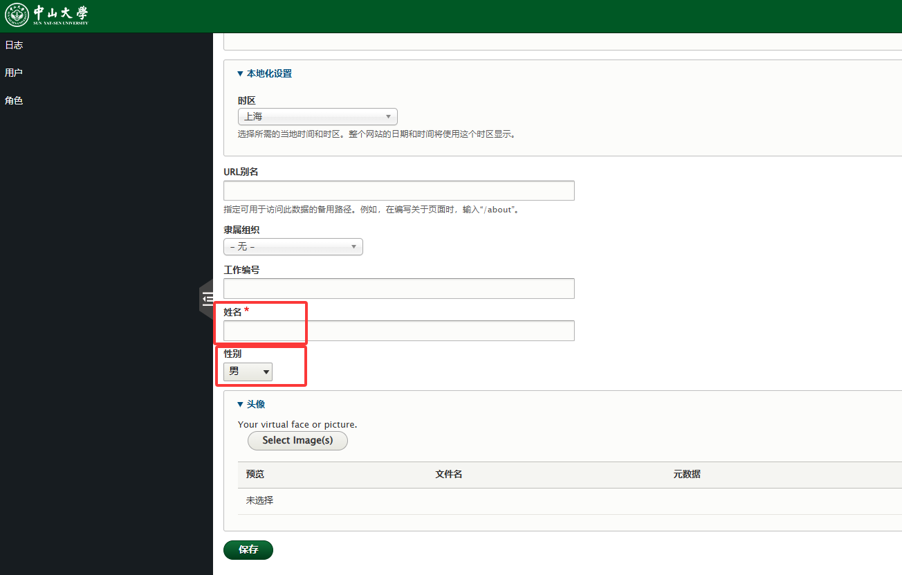 ⑧用户的姓名必填,还可对用户进行性别设置。