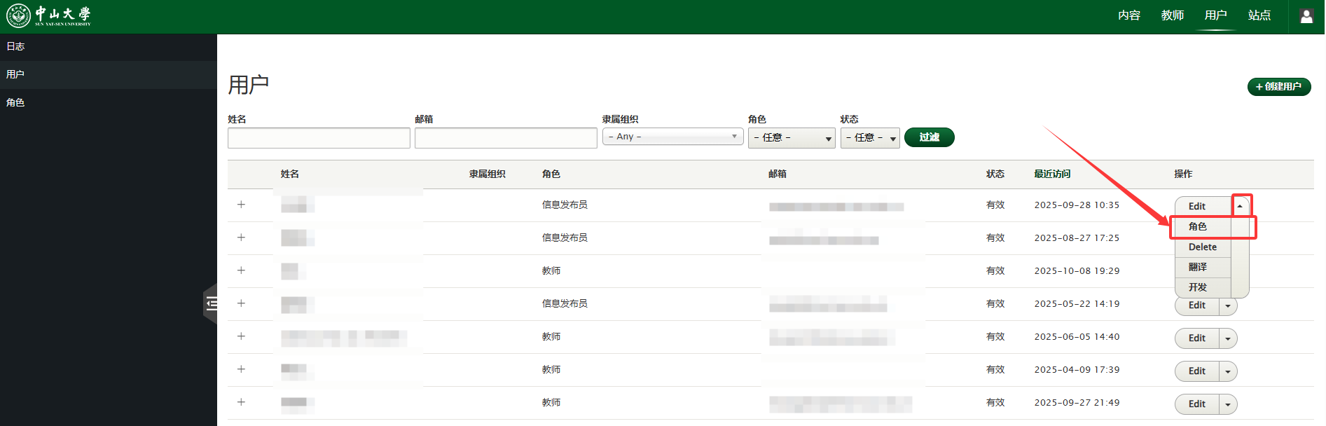 关于后台教师管理员权限分配帮助说明,可访问链接:https://webiah.sysu.edu.cn/faq/1975